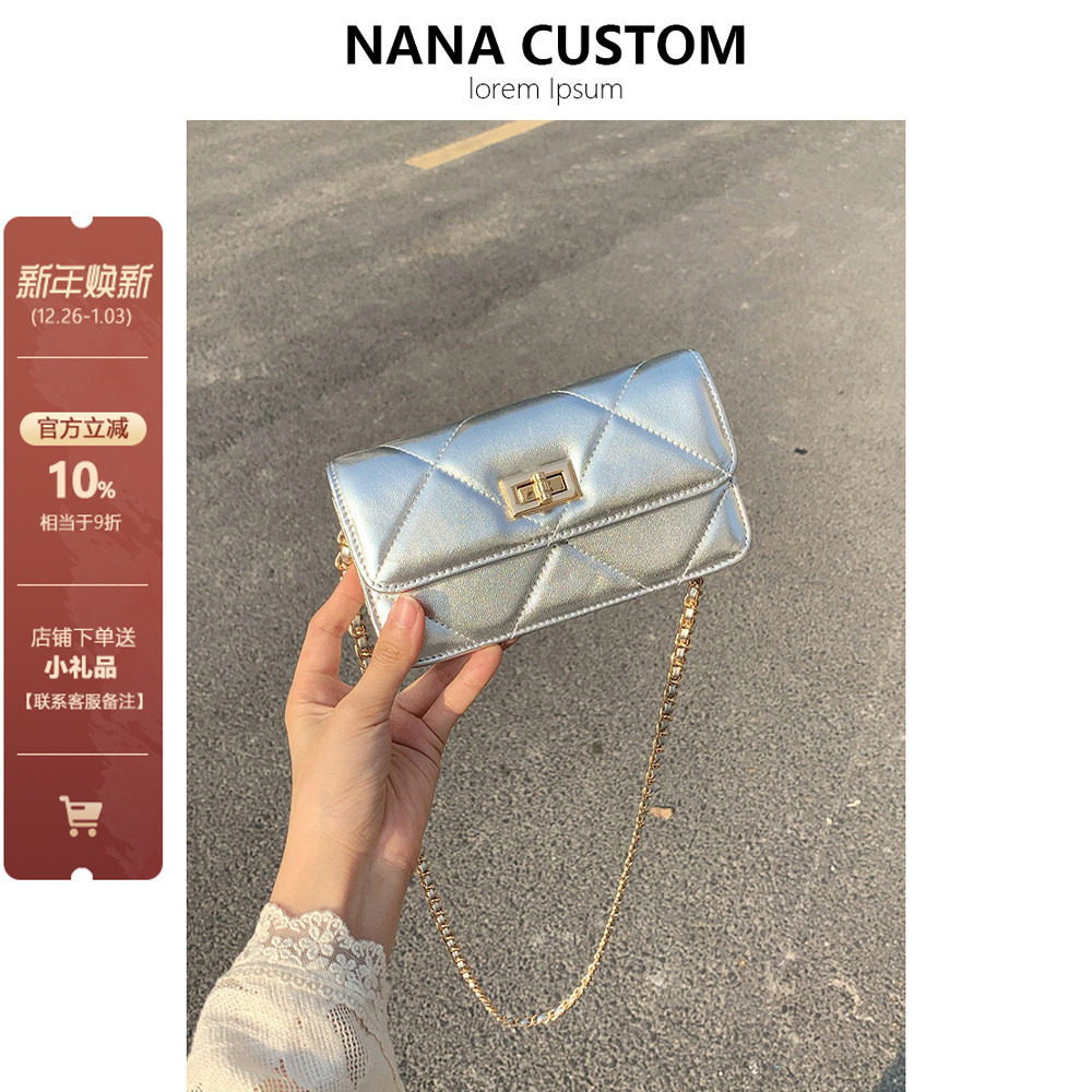 头层鱼子酱牛皮小众设计饭盒包真皮小香风菱格链条包百搭斜跨小包