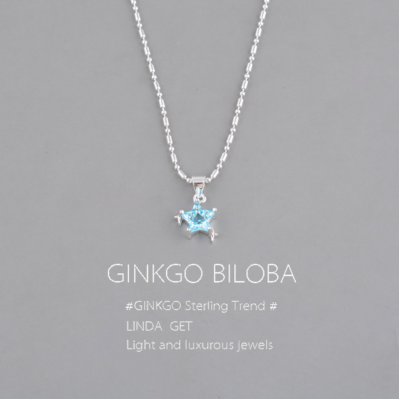 925纯银蓝色星星项链2025新款高级轻奢小众高级锁骨链冷淡风刻字