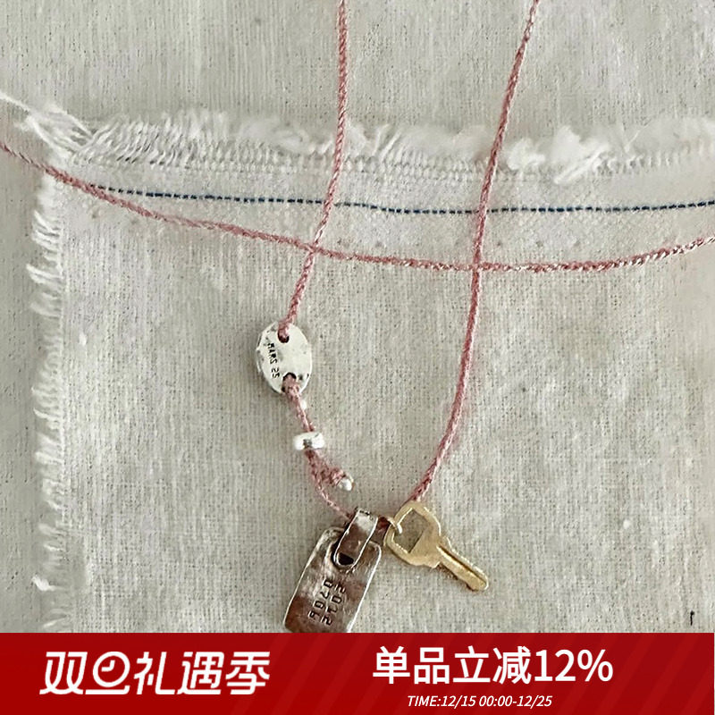 韩代ins小众设计mars25复古手工做旧925纯银刻字钥匙吊坠项链叠戴