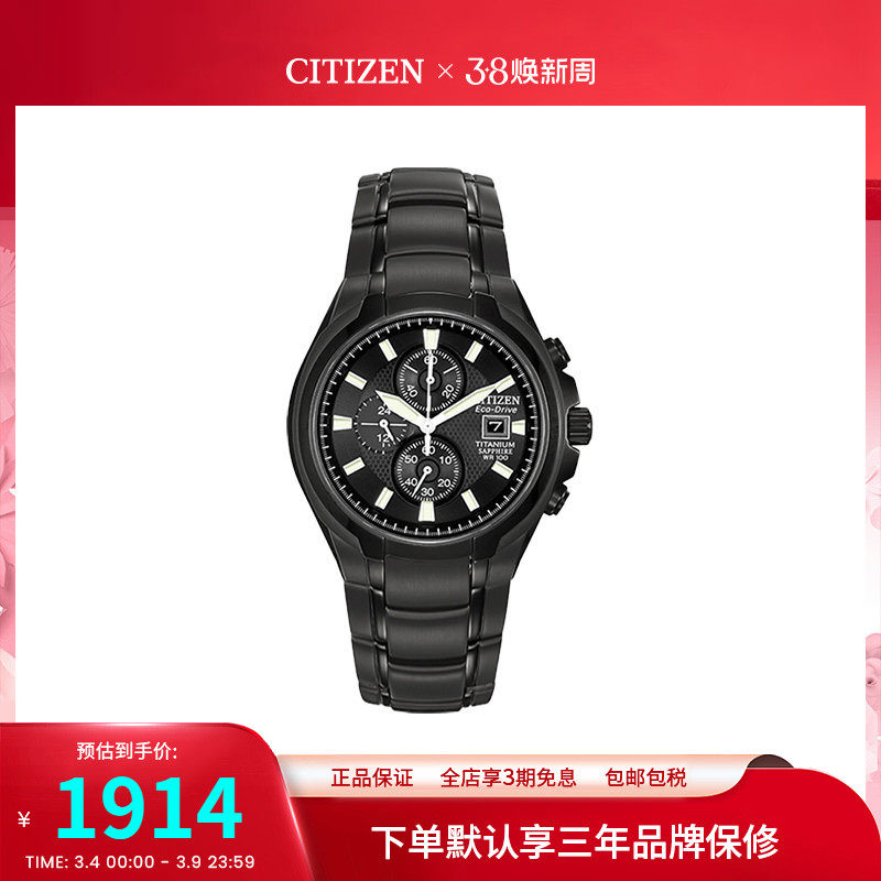 西铁城citizen日本手表男钛合金光动能三眼计时腕表CA0265-59E