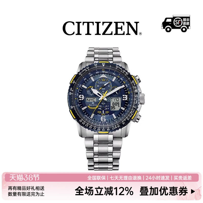 CITIZEN西铁城 日本手表男光动能电波防机芯磁蓝天使空中之鹰腕表