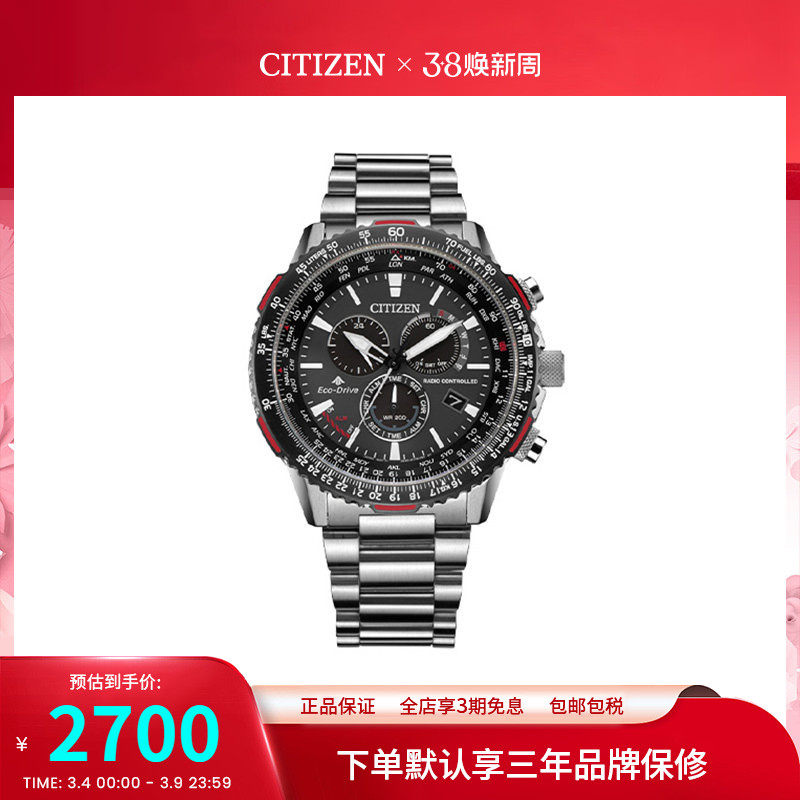 日本直邮西铁城系列光动能太阳能电波手表男士直航计时码表 CB587