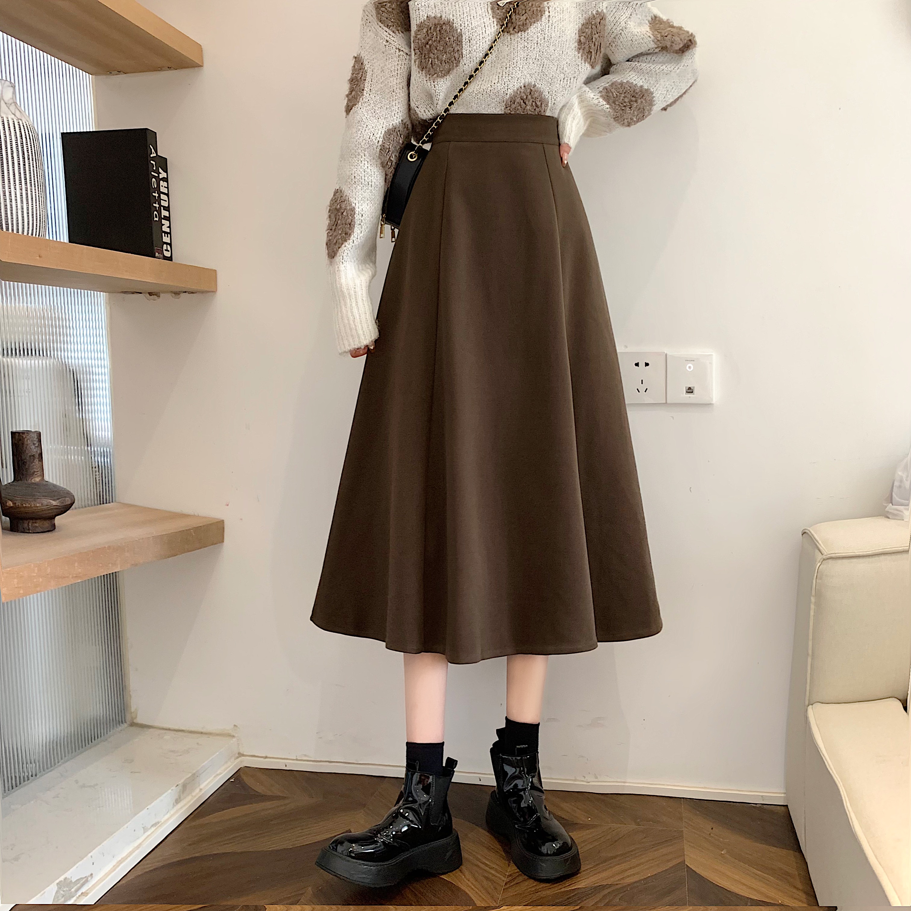 毛呢咖色半身裙2025新款女秋冬裙冬款裙子长裙A字小个子棕色伞裙