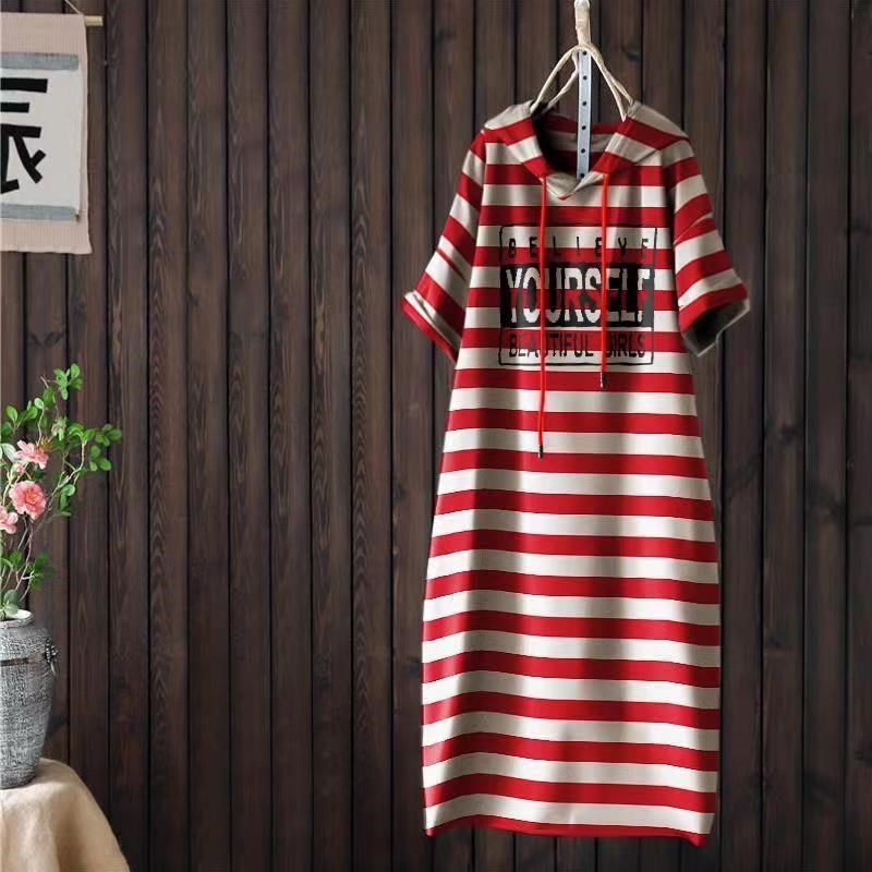 300斤大码条纹T恤女中长款宽松V领显瘦短袖韩版240斤开叉打底上衣