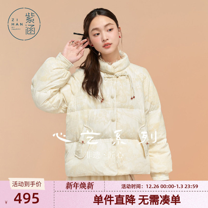 紫涵立领盘扣短款羽绒服外套女冬季新款国风设计感轻薄鸭绒面包服