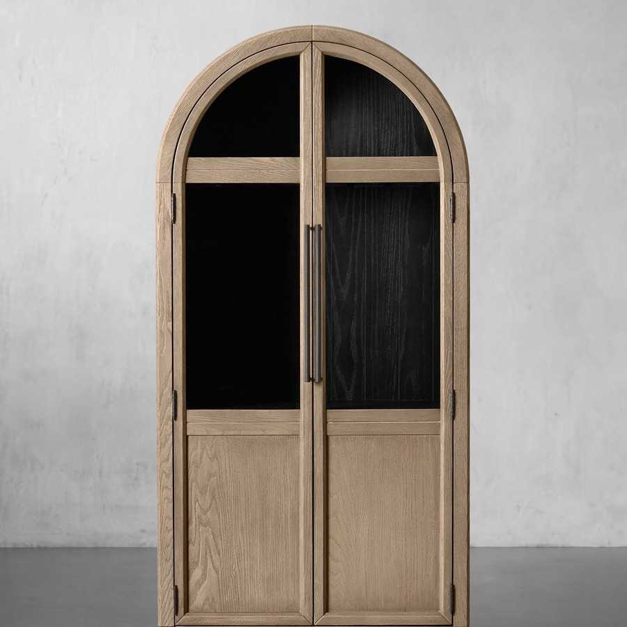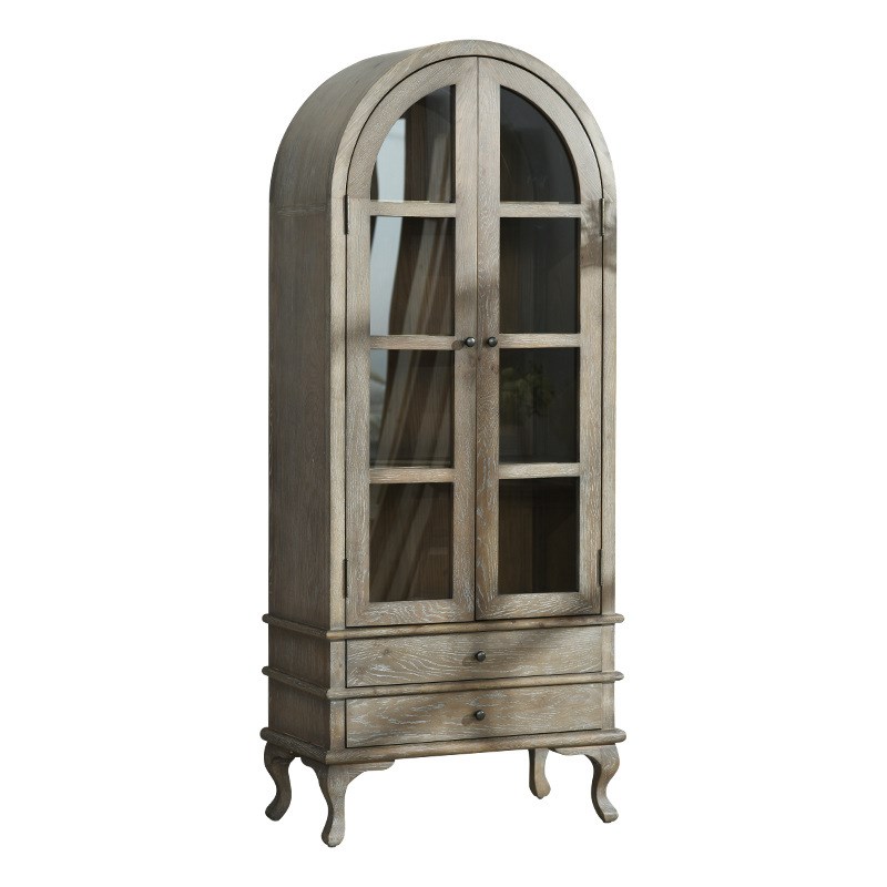 美式乡村圆顶橡木实木书柜电视机边置物柜客厅餐边柜法式酒柜餐柜