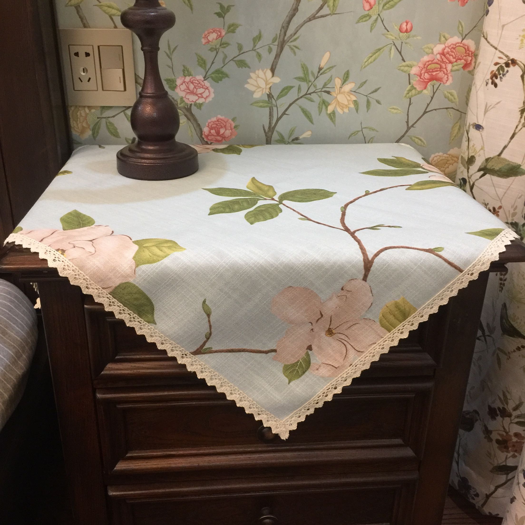 美式乡村田园棉麻印花床头柜角几电视机微波炉饮水机防尘盖巾盖布