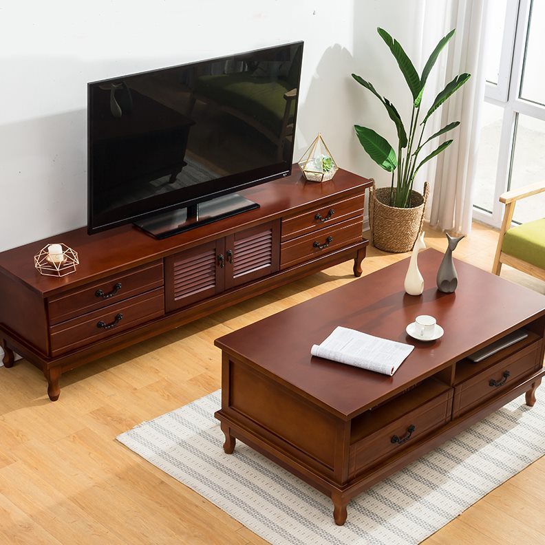 亮巢美式乡村电视柜茶几组合套装简约小户型地柜实木客厅电视机柜