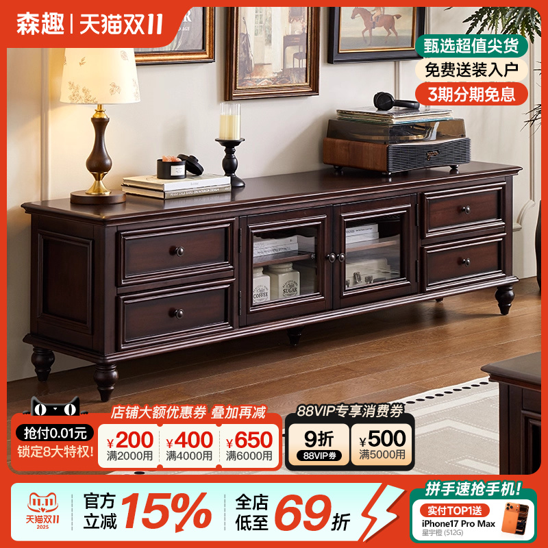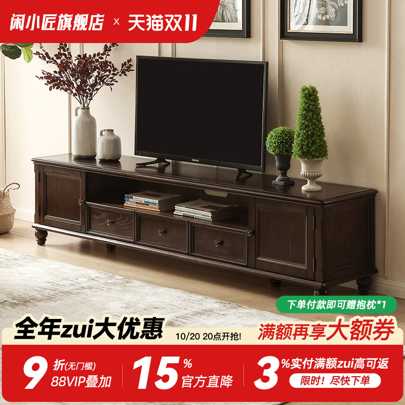 美式实木电视柜客厅茶几组合乡村复古轻奢M收纳储物地柜电视机柜
