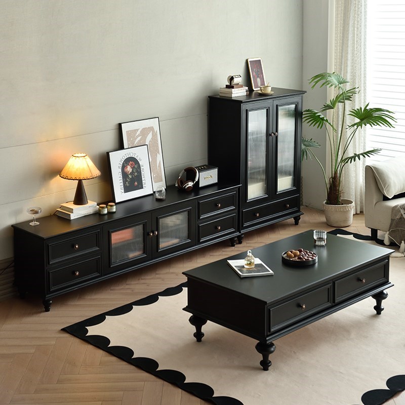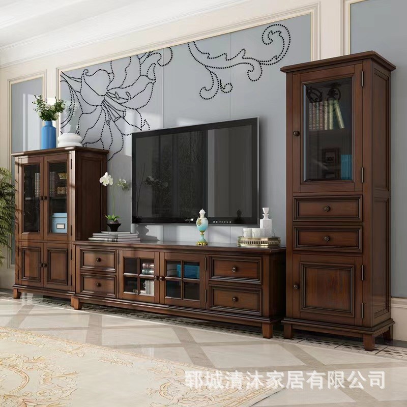 美式乡村电视机柜茶几组合柜客厅北欧小户型背景墙装饰柜实木地柜