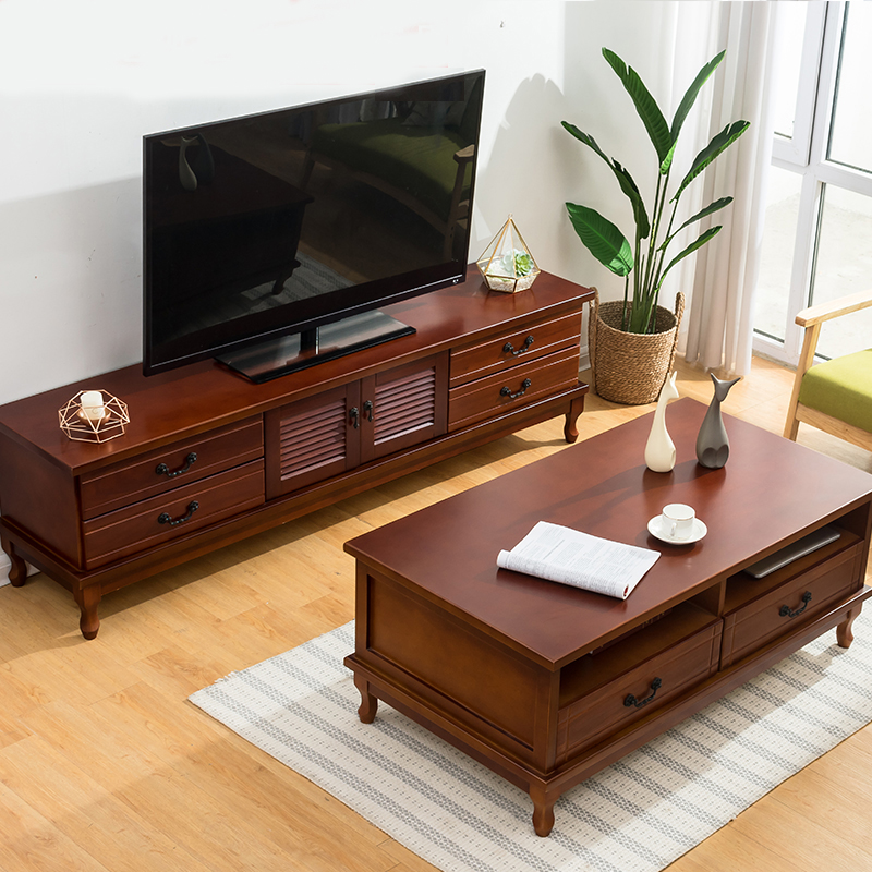美式乡村复古实木茶几电视机柜组合客厅家用电视柜收纳储物柜家具