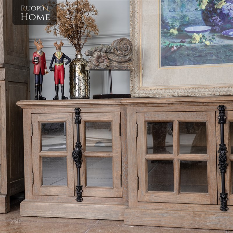 美式法式乡村白橡木实木书柜电视机边柜展示柜客厅餐边柜酒柜碗柜