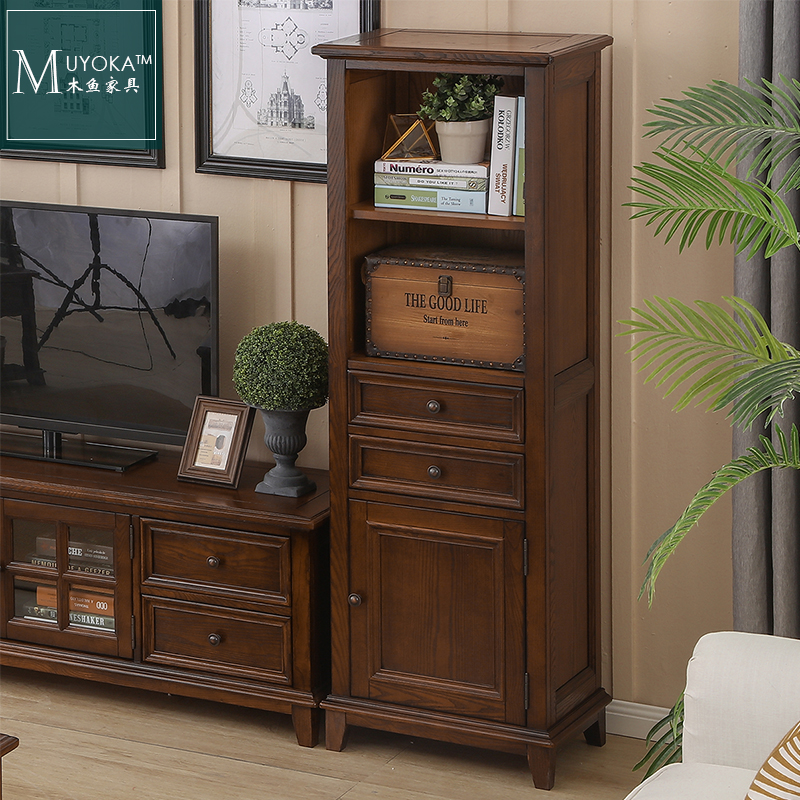 美式乡村实木电视机柜组合立柜窄柜侧边柜客厅高矮柜现代简约斗柜