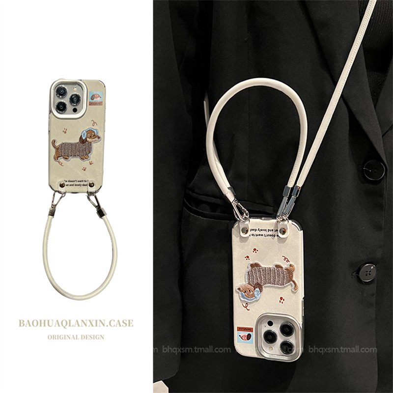 电镀牛仔白底脚印适用于苹果17promax手机壳iPhone15promax斜挎可背挂绳16pro新款14promax可爱12pro秋冬13女