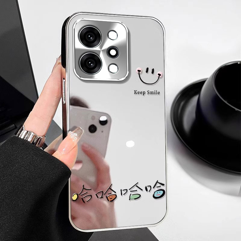 适用笑脸哈哈OPPOReno14手机壳13电镀12镜面11全包10pro+防摔9保护套8新款7se女6专用5爆款新品创意小众个性