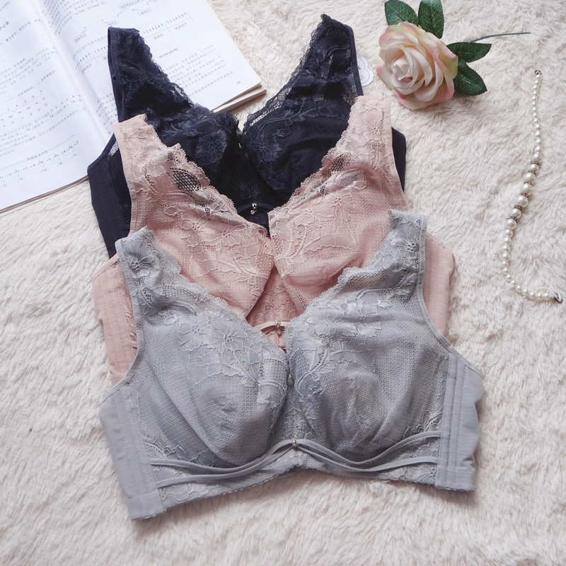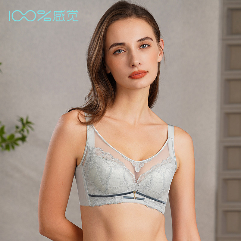 100%感觉蕾丝记忆软钢圈C杯全罩杯大胸显小聚拢薄款内衣文胸6027