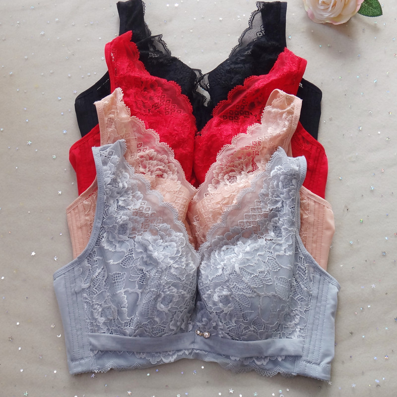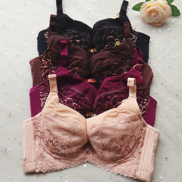 上托聚拢深V收副乳调整型薄款胸罩 全罩杯防下垂刺绣内衣女c d杯e