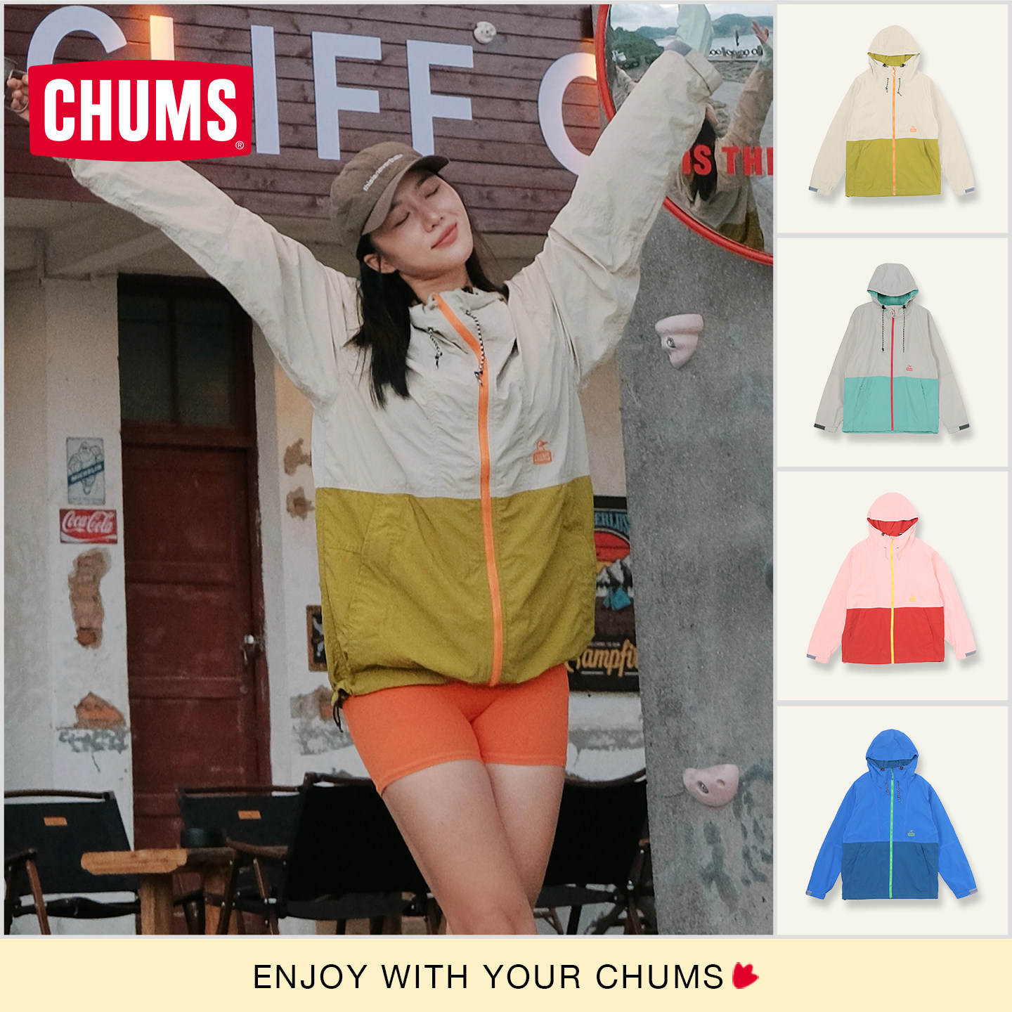CHUMS洽洽鸟户外夹克单层防风运动休闲男女款徒步拼接连帽外套