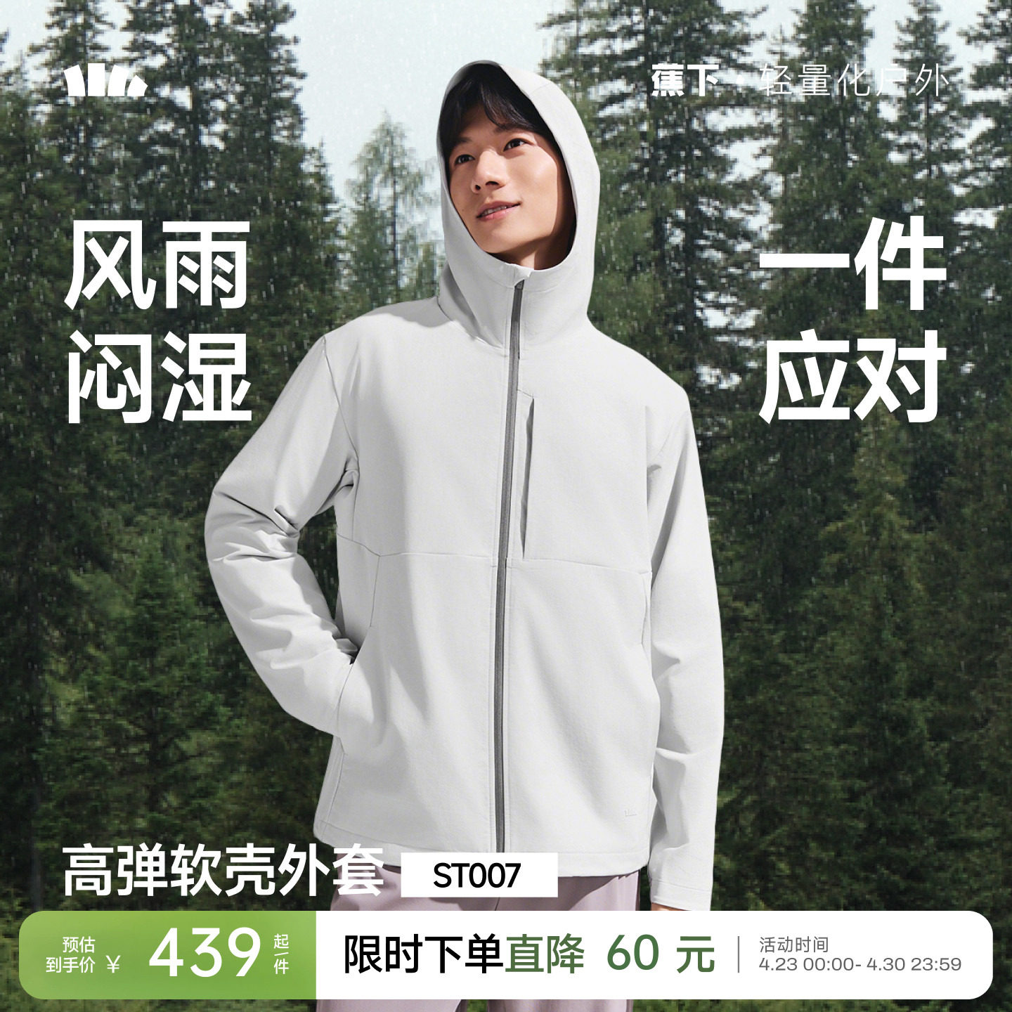 蕉下高弹软壳衣男款户外运动防风防泼水耐磨透气冲锋连帽夹克外套