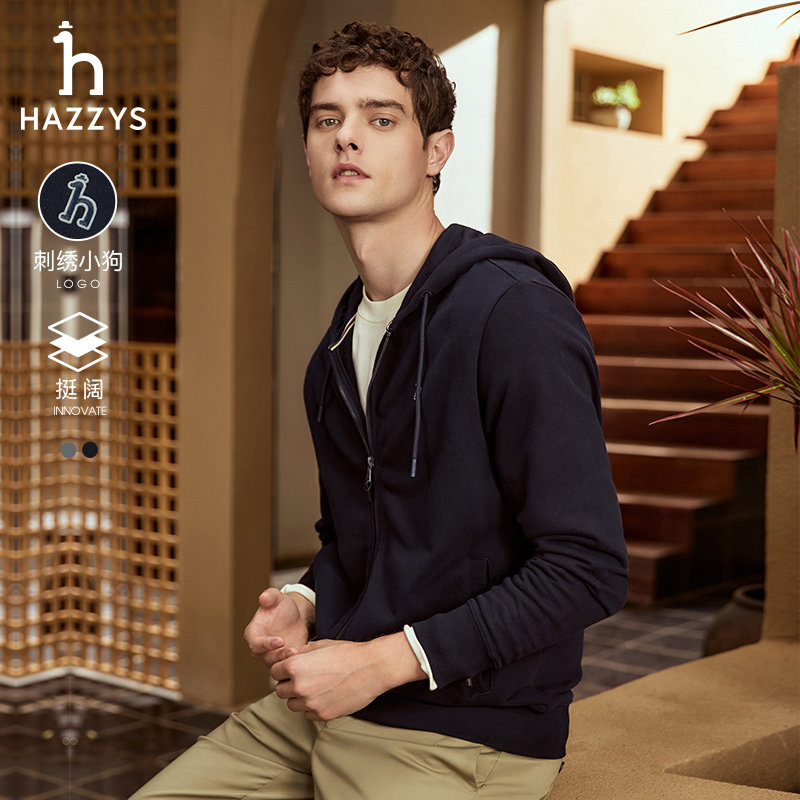 Hazzys哈吉斯男装春秋时尚舒适连帽拉链卫衣运动衫夹克外套潮上衣