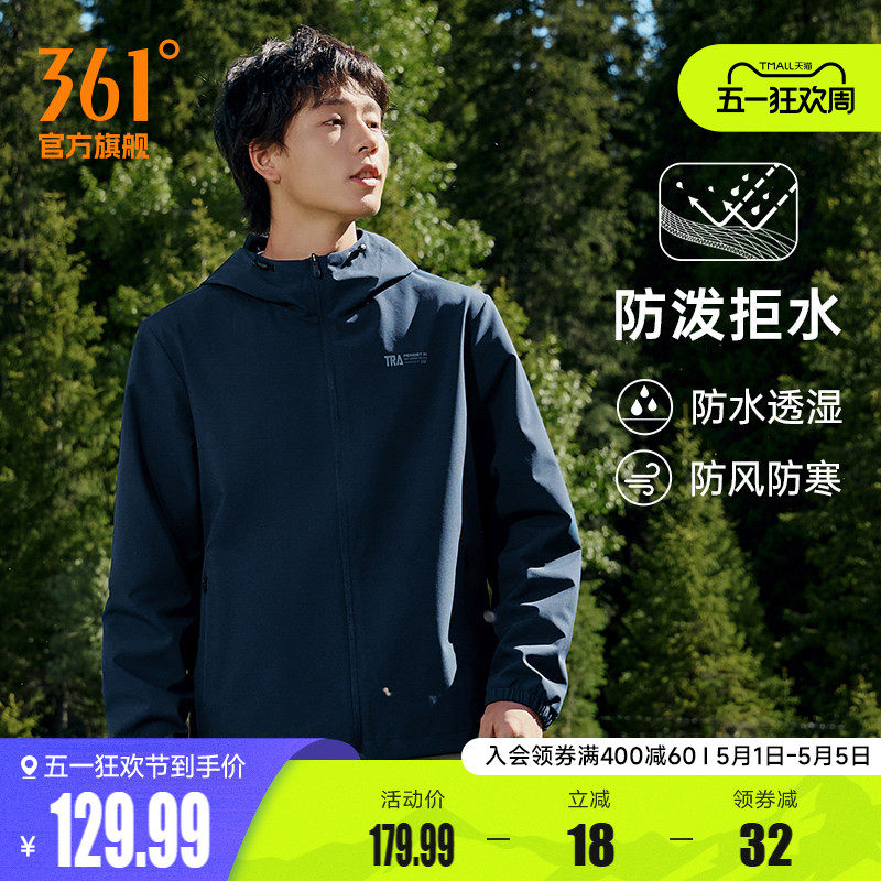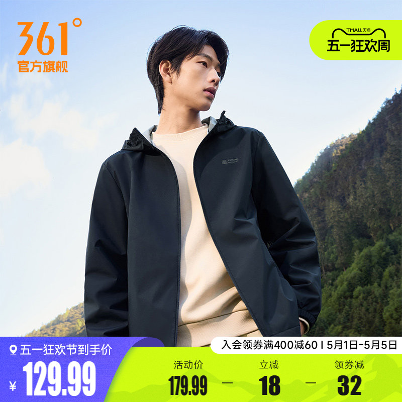 361运动外套男2026春季防风防泼水冲锋梭织夹克户外连帽立领风衣