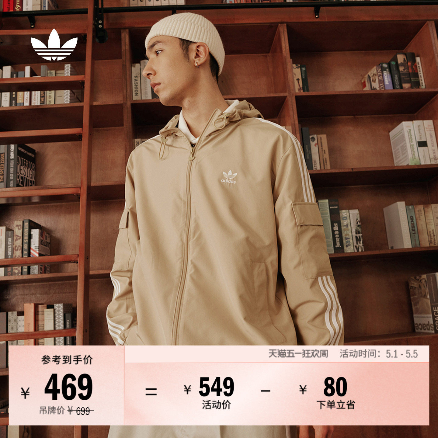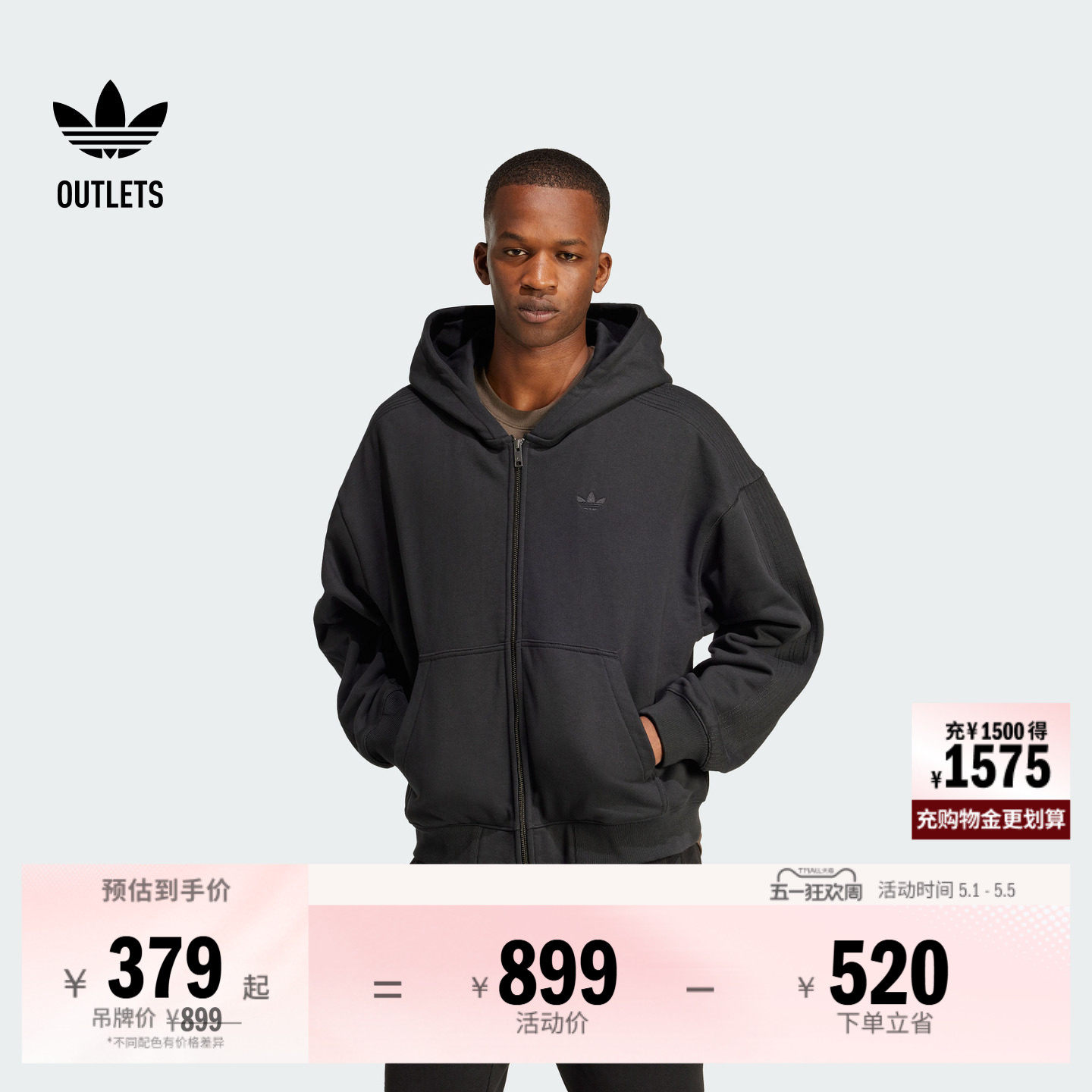 休闲百搭宽松运动连帽夹克外套男装adidas阿迪达斯outlets三叶草