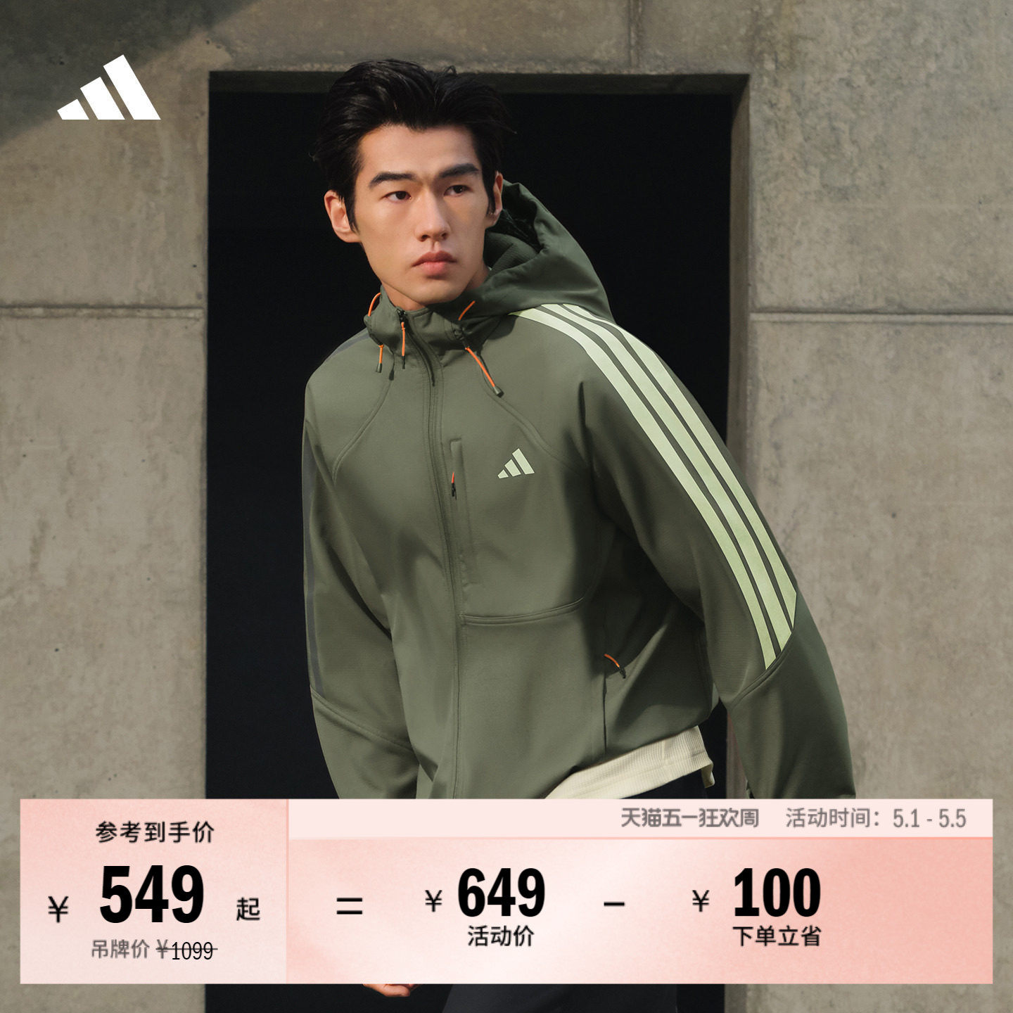 户外风通勤百搭运动拉链连帽夹克外套男春季新款adidas阿迪达斯