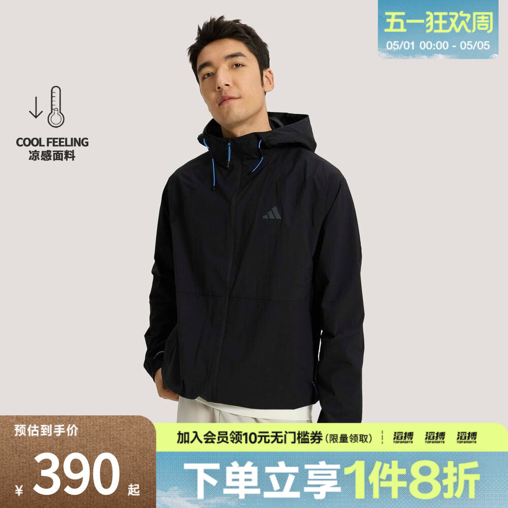 「滔搏运动」adidas阿迪达斯男子凉感休闲连帽夹克薄外套KR2511