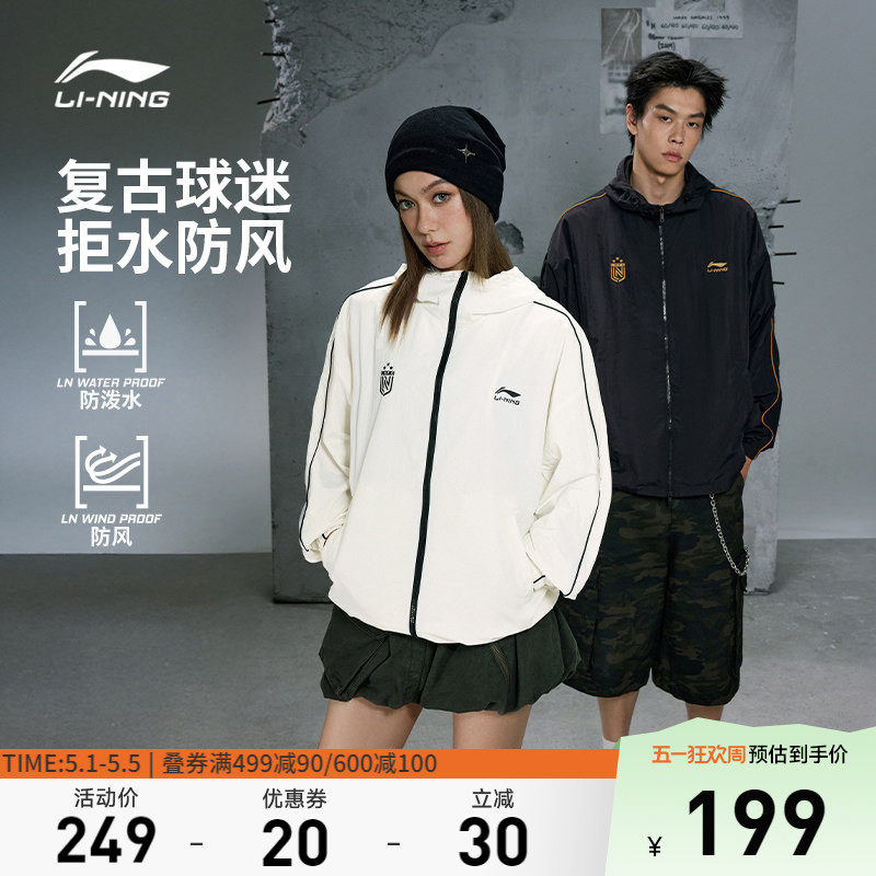 李宁外套男春季情侣复古球迷夹克美式休闲宽松连帽上衣运动风衣女