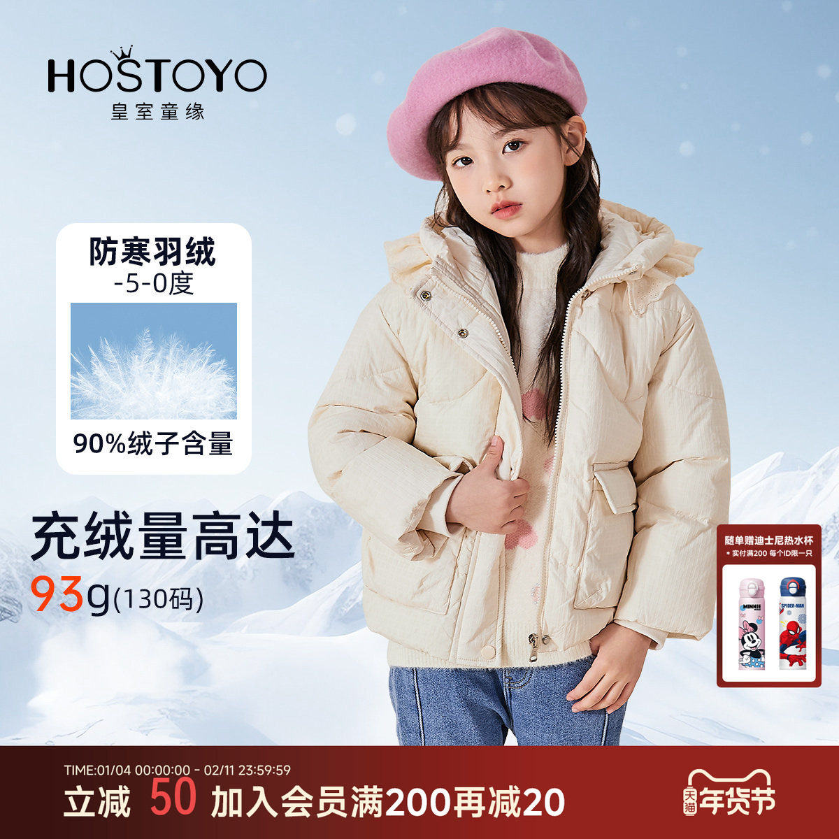 皇室童缘童装女童羽绒服短款秋冬季新款连帽外套儿童保暖轻羽绒服