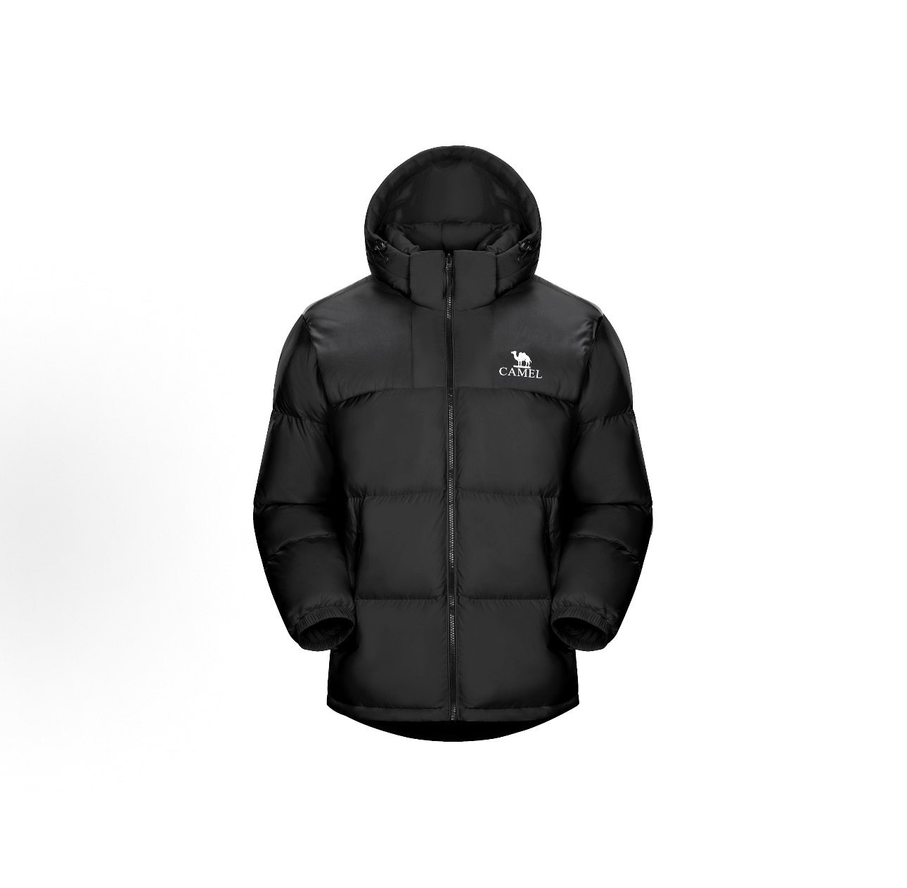 骆驼男装秋冬黑色加厚保暖鸭绒短款面包服男女同款防水羽绒服外套