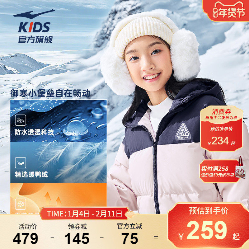 笛莎官方童装女童羽绒服短款秋冬季新款大童女孩儿童三防加厚外套