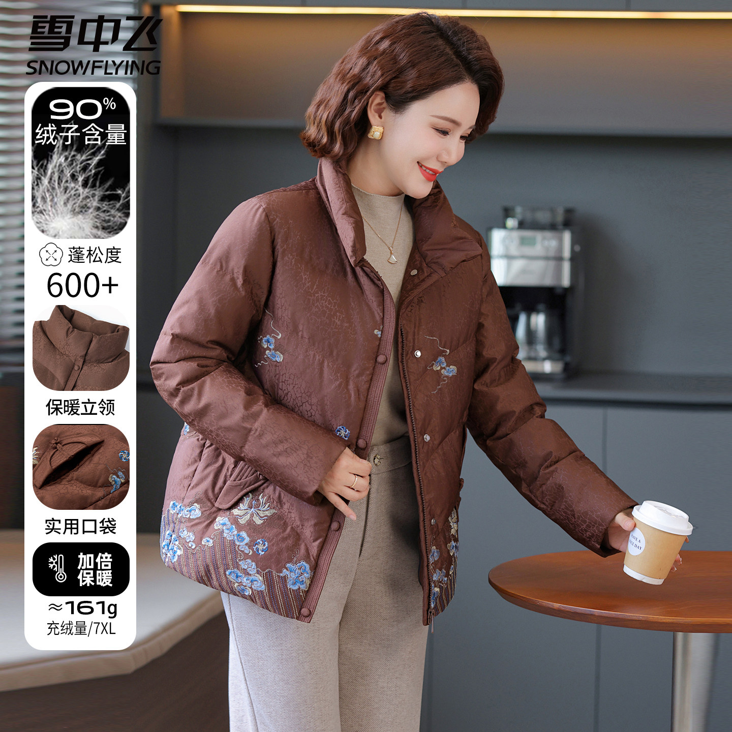 雪中飞羽绒服短款秋冬季2025新款中年妈妈刺绣冬装气质中老年外套