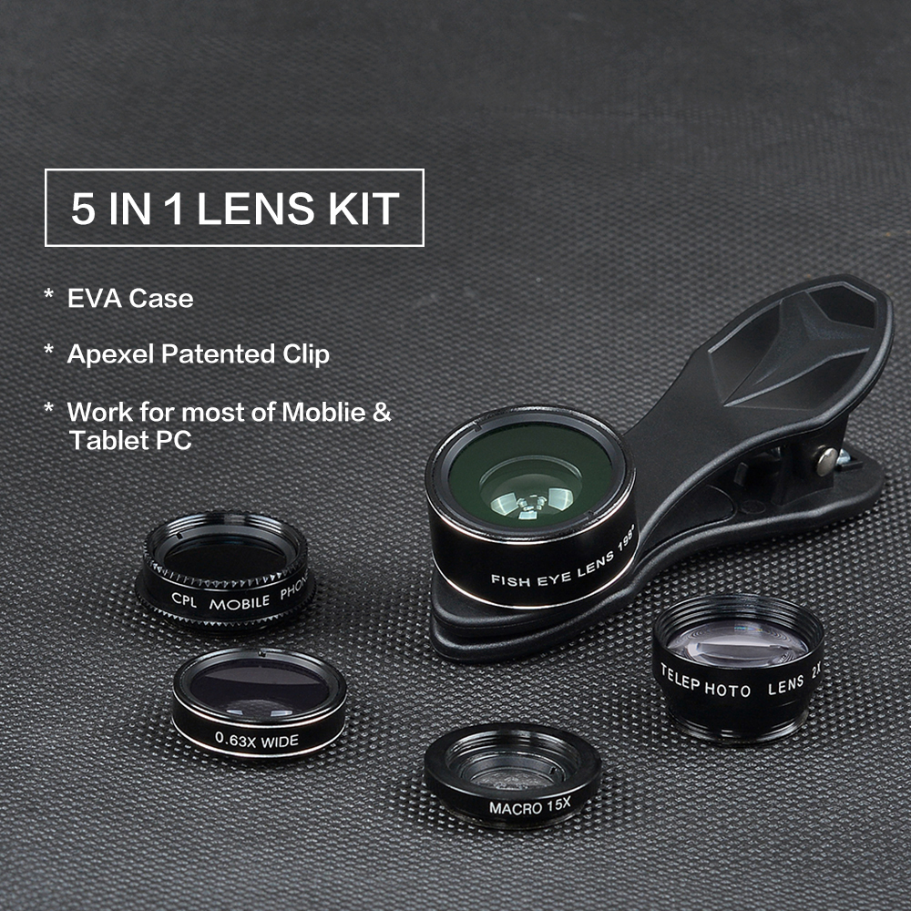 广角手机镜头单反通用微距鱼眼望远镜偏振五合一套装拍照摄像热销