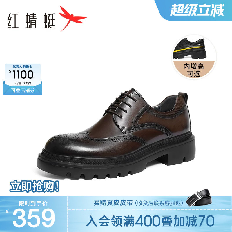红蜻蜓男鞋秋季新款厚底增高正装皮鞋男雕花布洛克结婚新郎鞋男士