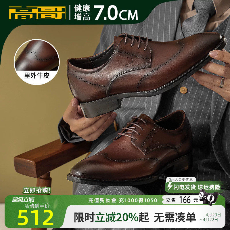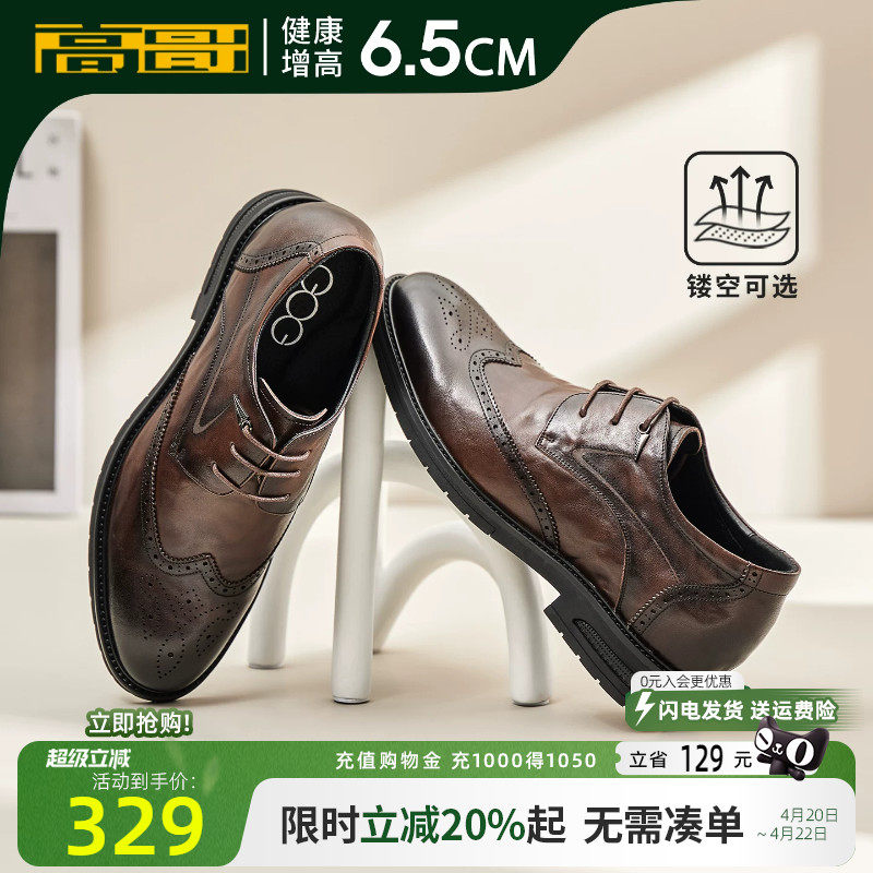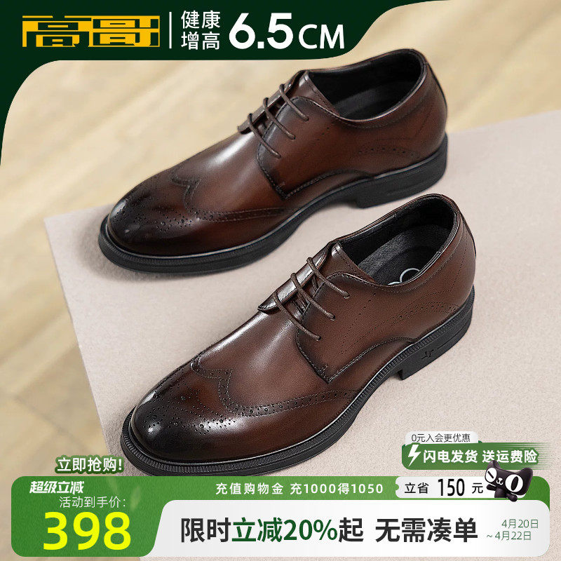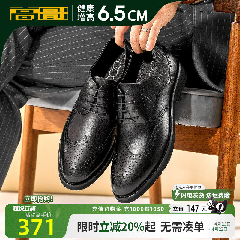 高哥增高皮鞋男正装鞋子透气商务布洛克雕花男鞋春季新款内增高鞋