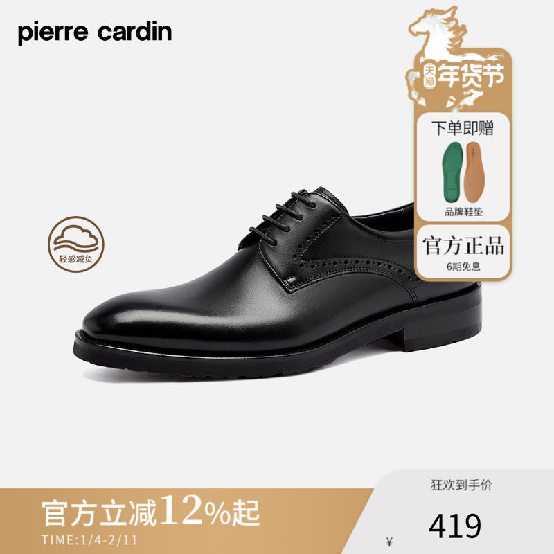 皮尔卡丹男鞋22秋新款商务正装皮鞋真皮布洛克雕花防滑耐磨系带