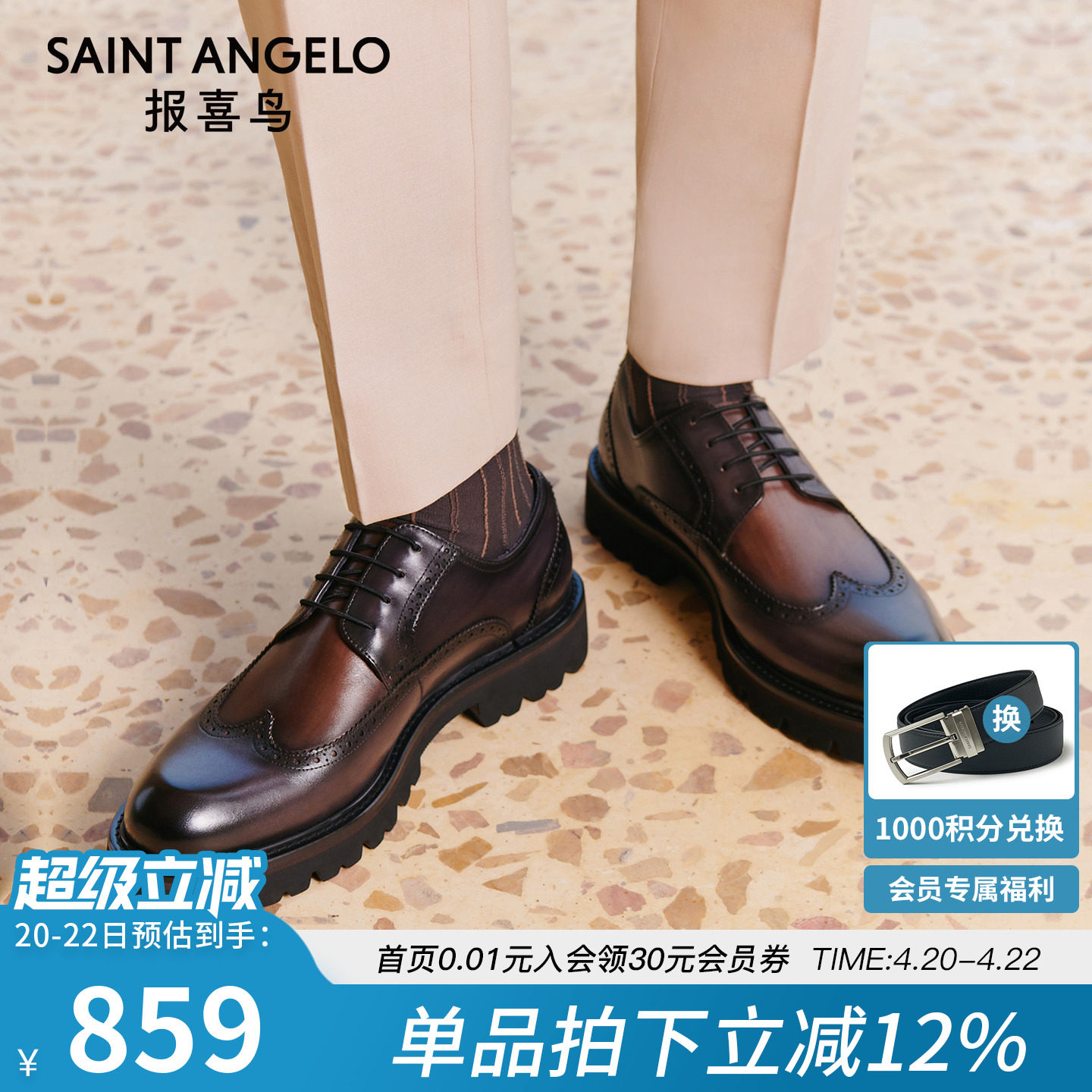 报喜鸟男士正装皮鞋2026春新款小牛皮手工擦色布洛克雕花商务男鞋