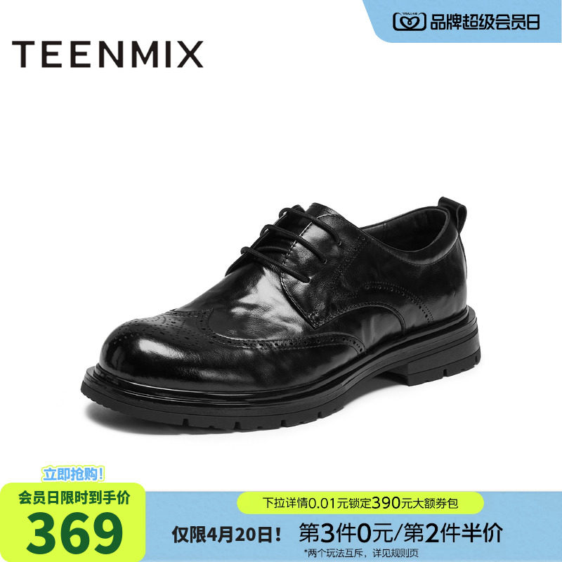 天美意2025冬新款商场同款布洛克雕花商务正装男皮鞋3XH01DM5