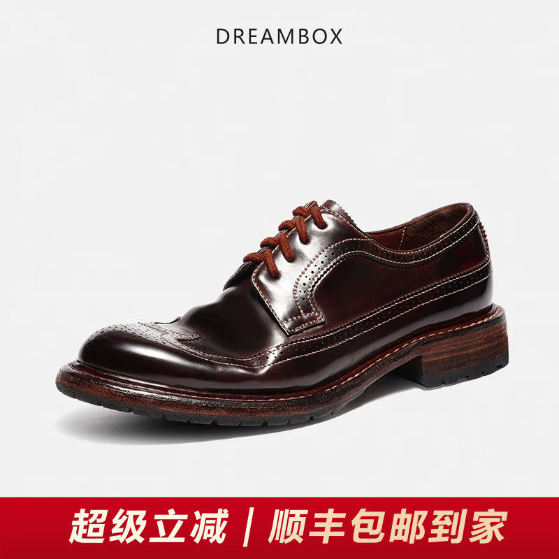 DREAMBOX钧博vibram纯手工固特异马臀皮皮鞋布洛克雕花商务男鞋潮