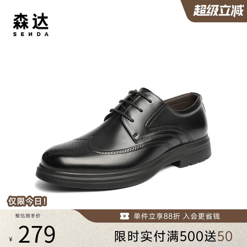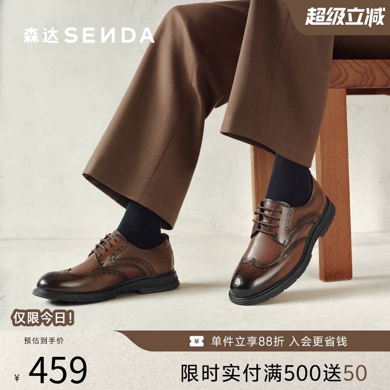 森达男鞋正装皮鞋布洛克雕花商务通勤德比鞋商场同款真皮增高婚鞋