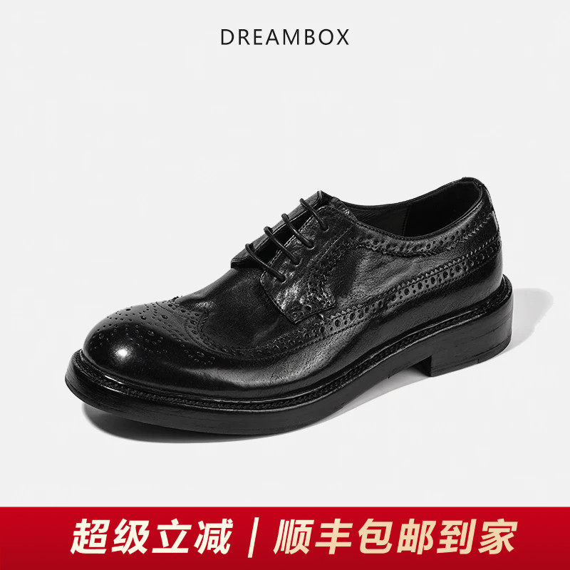 DREAMBOX钧博vibram马臀皮布洛克雕花商务男鞋手工固特异正装皮鞋