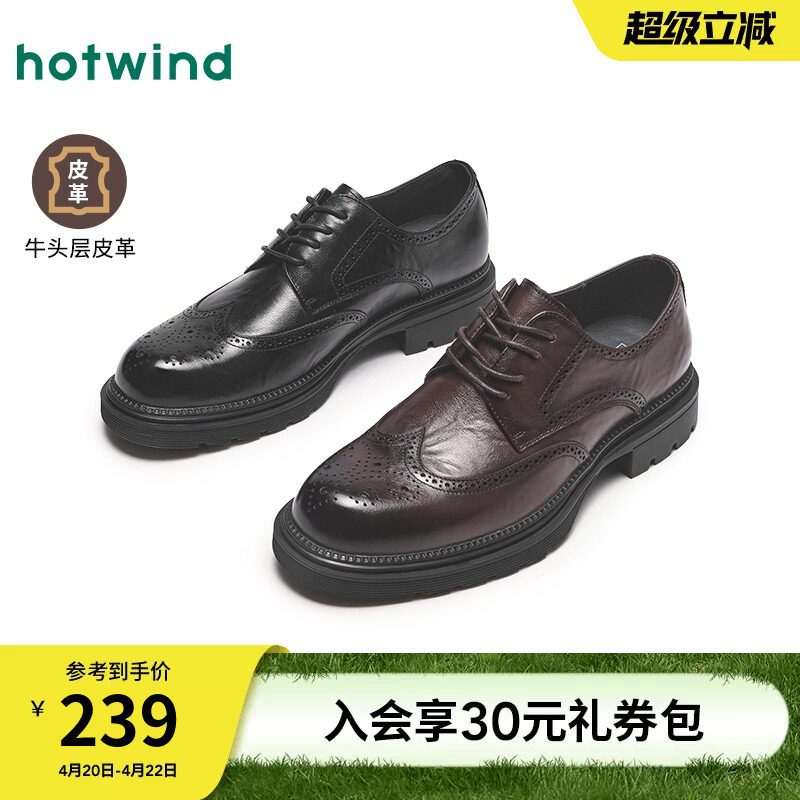 热风皮鞋男鞋2026春季新款德比鞋商务正装布洛克雕花新郎结婚鞋子