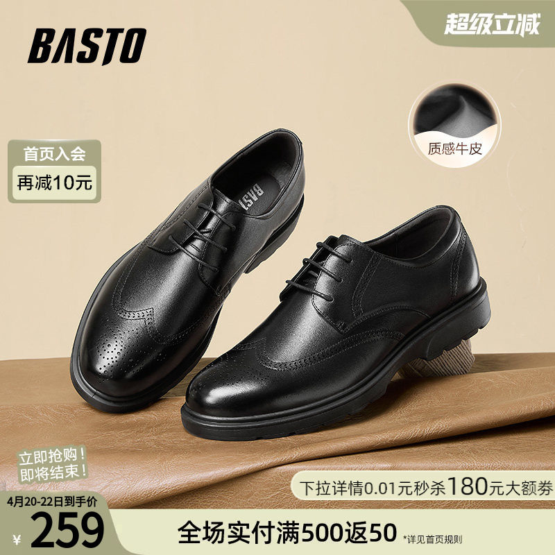 百思图春秋新款英伦布洛克雕花商务正装皮鞋男新郎结婚鞋30269AM5