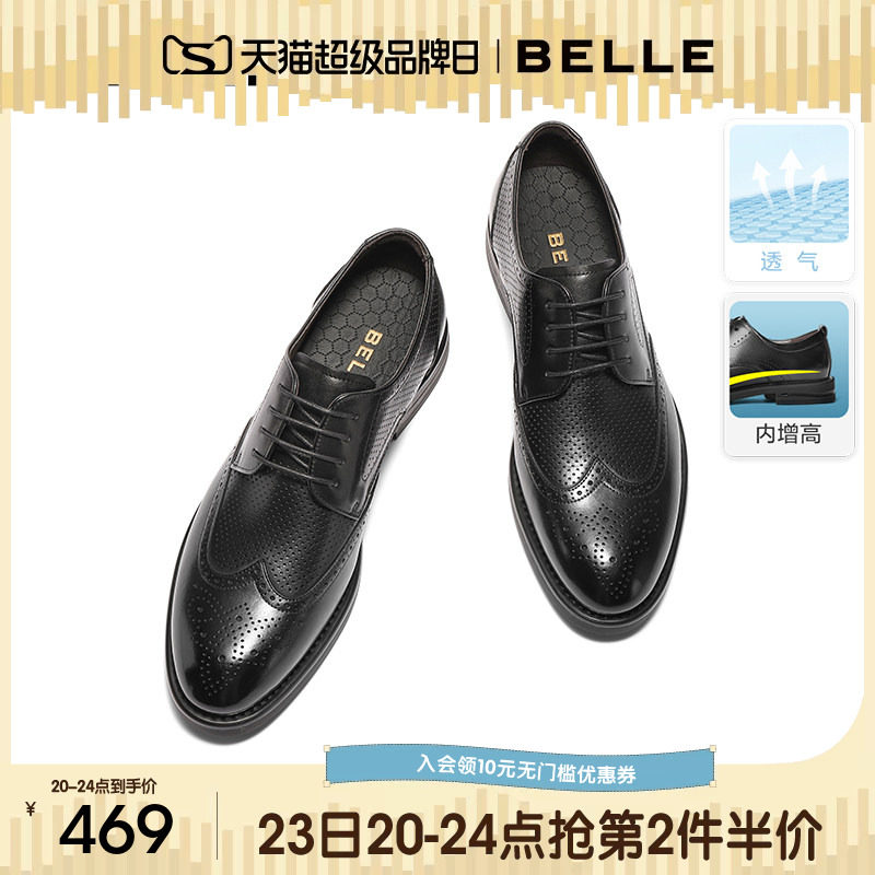 百丽男士布洛克雕花商务正装皮鞋夏季新款内增高新郎婚鞋7TN01AM3