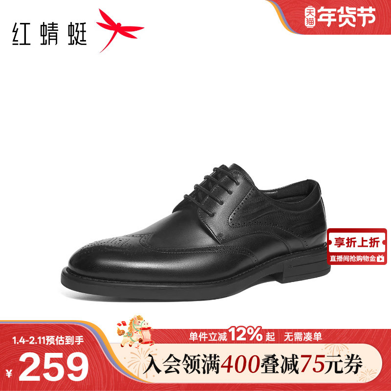 红蜻蜓正装皮鞋2025秋季新款男鞋商务皮鞋真皮布洛克雕花结婚鞋子