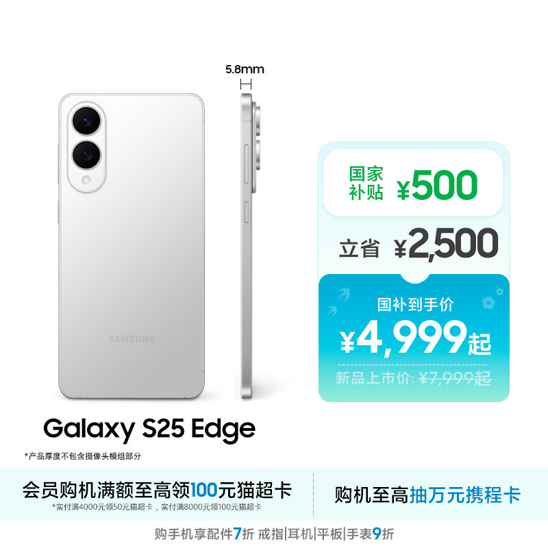 【国家补贴500元】Samsung/三星Galaxy S25 Edge超轻薄机身2亿像素 AI智能拍照手机官方正品