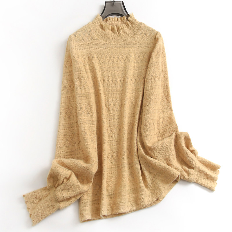 纯色磨毛温柔复古木耳花立领柔软亲肤长袖加厚打底衫女蕾丝衫J226
