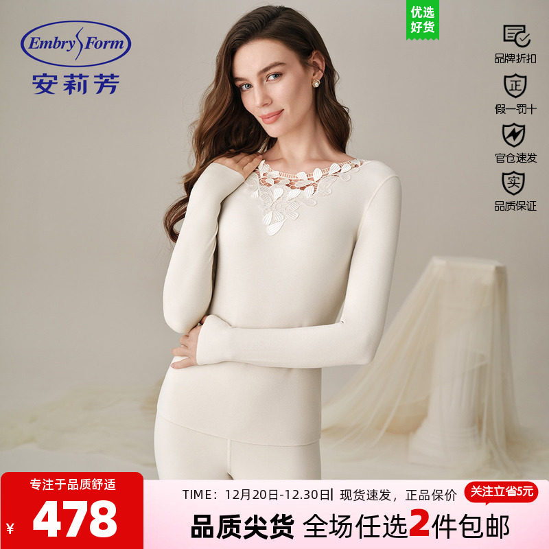 安莉芳2025新款打底衫女蕾丝时尚厚款舒适秋衣莫代尔保暖内衣上衣