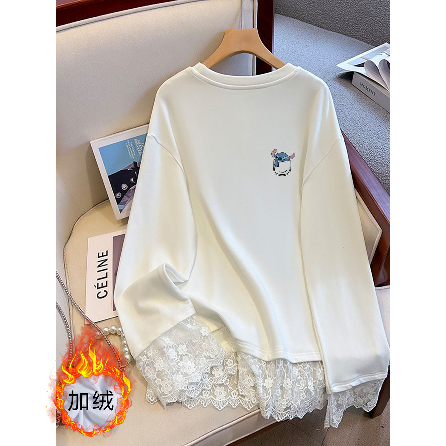 加绒加厚长袖2026新款保暖打底衫女蕾丝时尚显瘦气质上衣大码女装